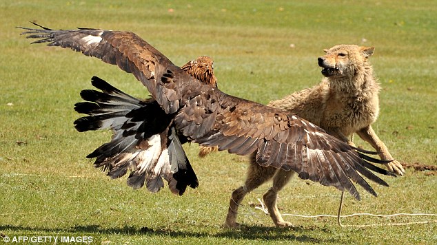 Chó sói ‘bất lực’ làm mồi cho đại bàng