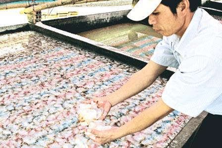 Năm nay, do sản lượng sứa thấp hơn, nên bạn hàng phải sang tận xưởng 'ăn chực nằm chờ' giám sát đơn hàng. Cuối mùa, một thùng sứa thành phẩm được bán với giá khoảng từ 700 nghìn đến 800 nghìn đồng.