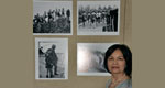 Tác giả Trần Mộng Tú trước các tác phẩm trưng bày tại phòng sinh hoạt Người Việt, ngày 15 tháng 5. (Hình: Trần Mộng Tú cung cấp)
