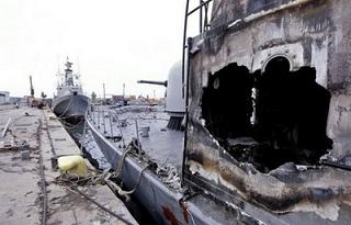 Các máy bay chiến đấu của NATO hôm qua (20/5) đă dội mưa bom và tên lửa xuống hàng loạt tàu chiến của Hải quân Libya đang neo đậu ở 3 cảng, khiến các con tàu bị ch́m một phần hoặc bị cháy c̣n khu vực cầu cảng th́ rải đầy những mảnh vỡ. Đây là đ̣n đánh mạnh nhất của NATO vào lực lượng Hải quân của Tổng thống Muammar Gaddafi kể từ khi liên minh quân sự này can thiệp vào Libya hôm 31/3.