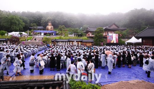 Hàng nghìn fan đội mưa trong ngày giỗ đầu của Park Yong Ha