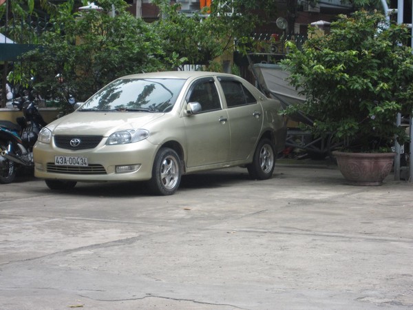 Chiếc xe ô tô BKS 43A-004.34 hiệu Toyota Vios được thu hồi đang đậu tại sân Công an quận Hải Châu để chờ giải quyết
