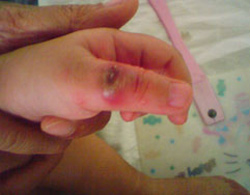 Bé trai nhiễm trùng máu do nghiện mút tay