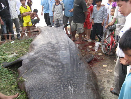 Cá nhám voi nặng hơn 2 tấn mắc lưới