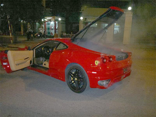 Siêu xe Ferrari bốc khói ngùn ngụt trên đường phố Hà Nội