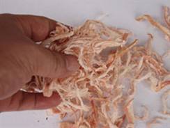 Ngoài ra, vị tanh của mực rất ít, màu  sắc của loại mực xé gồm trắng xen hồng hoặc trắng xen đỏ. C̣n sợi mực  khá bở và mềm. Nếu đưa sợi mực xé lên mũi, th́ hương vị không được thơm.
