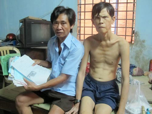 Anh Cao Tấn Sỹ (phải) tiều tụy, xanh xao v́ đang gánh căn bệnh u sọ hầu, u tuyến yên