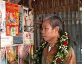 Anh Trương văn Sương thắp nhang cho người vợ đă chịu đựng đau khổ chờ chồng đến chết. RFA file