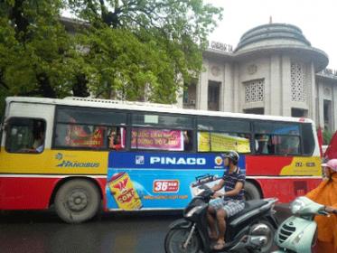 Xe bus chứa đầy người trong đoàn biểu tình, chạy từ Bờ Hồ, rẽ vào trước tòa nhà Ngân Hàng Nhà Nước, rồi sau đó chạy lòng vòng.