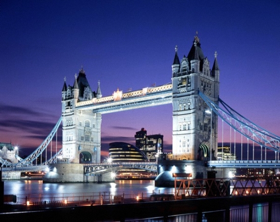 Cây cầu tháp này bắc qua sông Thames ở London, được khánh thành năm 1894 sau 8 năm xây dựng, nổi tiếng với thiết kế 2 ngọn tháp ở 2 đầu cầu vững chắc chịu lực cho phần thân cầu. Kết hợp cùng hệ thống thủy lực, cây cầu giúp cho tàu bè qua lại dễ dàng, du khách có thể leo lên tháp để ngắm nhìn toàn cảnh và có thể đi bộ qua cầu. Cầu tháp Tower Bridge đã trở thành biểu tượng không thể thiếu của London.