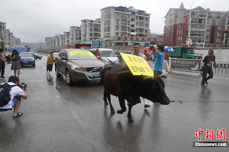 Bò kéo Volvo 'bị bệnh' giữa phố đông người