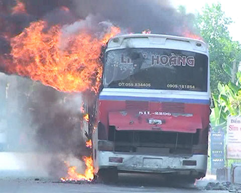 Cháy rụi xe khách trên Quốc lộ 1A