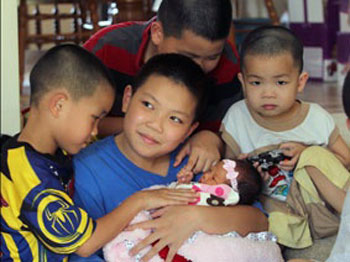 Bé trai gốc Việt giúp mẹ sinh em bé