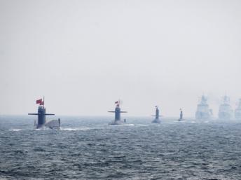Tàu ngầm và chiến hạm Trung Quốc tham gia cuộc thao diễn hải quân quốc tế ngày 24/04/2009 ngoài khơi Thanh Đảo, nhân kỷ niệm 60 năm ngày thành lập Hải quân Trung Quốc./REUTERS/Guang Niu