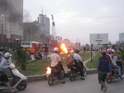 2 xe máy bốc cháy kỳ lạ trước ṭa nhà KeangNam