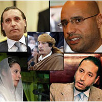 Từ trái sang, từ trên xuống: Saif al-Islam, Saif al-Arab, Saadi, Aisha, Hannibal, Mo'tassim, Khamis, và Mohammed