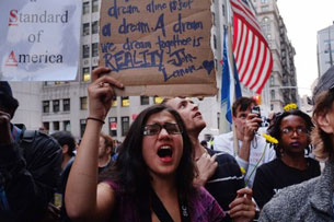 Phong trào biểu t́nh “Chiếm Phố Wall” là một cơ hội để cho người dân bày tỏ nỗi bức xúc của ḿnh trước nhà cầm quyền và trước các định chế tài chính.