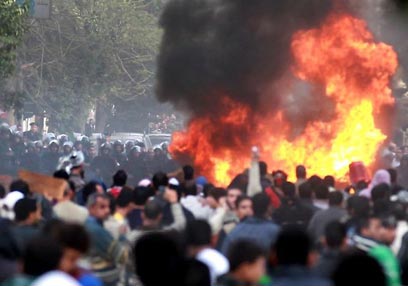 Ở đất nước có hơn 80 triệu dân Ai Cập, bằng khẩu hiệu “Một ngày nổi dậy” đ̣i Tổng thống Hosni Mubarak từ chức truyền đi qua điện thoại di động, qua Facebook, qua báo chí và mạng internet, nhiều cuộc biểu t́nh, bạo động chính trị quy mô lớn, thu hút sự tham gia của hàng chục ngàn người đă nổ ra tại thủ đô Cairo, thành phố cảng Alechxandria, vùng kênh đào Suez…