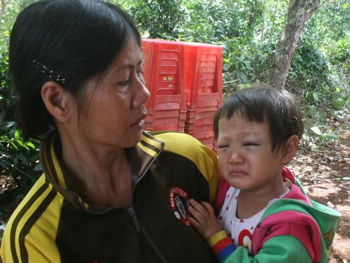 Mẹ của bé, chị Hương lấy chồng năm 19 tuổi. Vốn là một thiếu nữ nông thôn ít học không nghề nghiệp hàng ngày đi tách vỏ hạt điều cho các hộ thu mua điều.