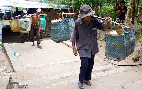 Họ là những người bản xứ quanh năm mưu sinh tại chốn danh thắng này bằng một nghề tuy lạ nhưng không mới: Nghề cửu vạn.
