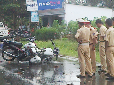 3 nữ sinh đi xe máy tông thẳng vào CSGT