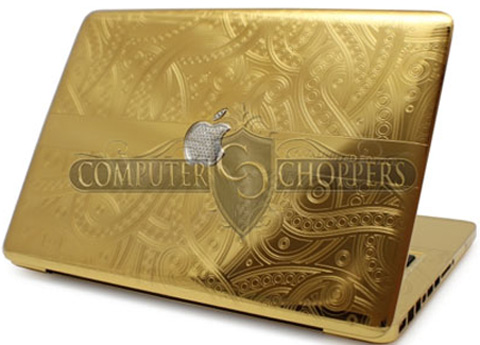 Trong Hội nghị Gitex diễn ra từ ngày 10 đến 13/10/2011 tại Dubai, chiếc laptop Macbook Pro được trưng bày, bọc toàn bộ bằng vàng 24k có vân hoa trang trí, logo quả táo khuyết của Apple trên vỏ được đính đấy kim cương.