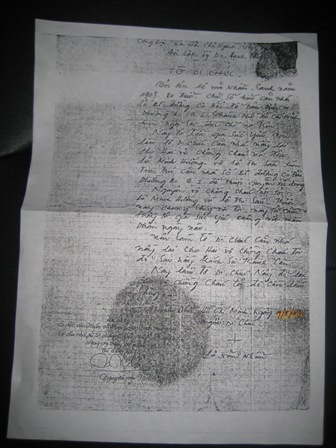 | Tờ di chúc của ông nội chồng bà Sáu cho vợ chồng bà ở trong một phần căn nhà số 25 Cô Bắc để tiện việc chăm sóc cho ông. |