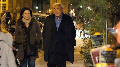 | Ông bà Strauss-Kahn trên đường phố Paris tối 27-11-2011 - Ảnh: Daily Mail |