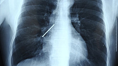 Đinh dài 15cm nằm trong phổi