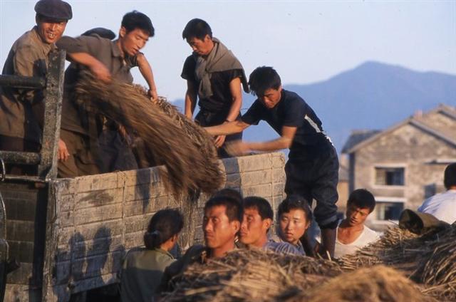 Xe chở rơm về phát cho dân bắc hàn ăn đây mà.