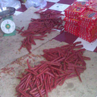Lạp xưởng thành phẩm vứt cả ra nền gạch