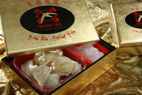 Các loại quà giá "khủng" như yến sào, vi cá lên ngôiTrong  vai một khách hàng, chúng tôi liên hệ với Công ty yến sào Hoàng Yến (Bà  Triệu, Hoàn Kiếm, Hà Nội). Một nhân viên của công ty này giới thiệu,  yến sào có nhiều loại và nhiều giá tiền khác nhau. Yến sào tự nhiên  thường có giá cao gấp hàng chục lần yến được nuôi trong nhà. Thông  thường, yến sào tự nhiên được chia thành 3 loại: Yến huyết, bạch yến và  yến đảo. Trong khi yến huyết có giá từ 150 - 180 triệu đồng/kg th́ bạch  yến có giá 120 triệu đồng/kg. Trao  đổi với PV, nhân viên này cho biết: Mặc dù thời điểm hiện tại c̣n cách  tết Nhâm Th́n hơn 1 tháng nhưng nhiều người đă gọi điện đến đặt hàng.  Loại yến sào giá 180 triệu đồng/kg thường bán chậm hơn các loại có giá  từ 60 - 120 triệu đồng/kg".