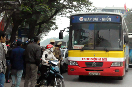 Hà Nội: “Thót tim” vụ xe buýt chèn taxi trên phố