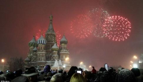 Màn bắn pháo hoa chào đón năm mới ở Nga (Ảnh: Dailymail)