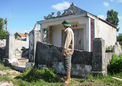 Ông Nguyễn Song Hồng, trưởng thôn làng Đại Bắc dẫn chúng tôi ra ngôi đền thờ cá Ông, bên cạnh là ngôi mộ. Ông cho biết, ngư dân hàng năm đều đặn vào ngày mồng 1, 15… đến thắp hương thờ cúng, khẩn cầu những điều tốt lành.