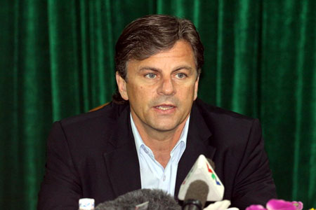 Chuyên nghiệp ngay cả trong cách chia tay, HLV Falko Goetz độc diễn trong suốt buổi họp báo ngắn trưa nay và sau cái bắt tay thật chặt với Phó chủ tịch VFF Phạm Ngọc Viễn, ông thầy người Đức đă ra đi.