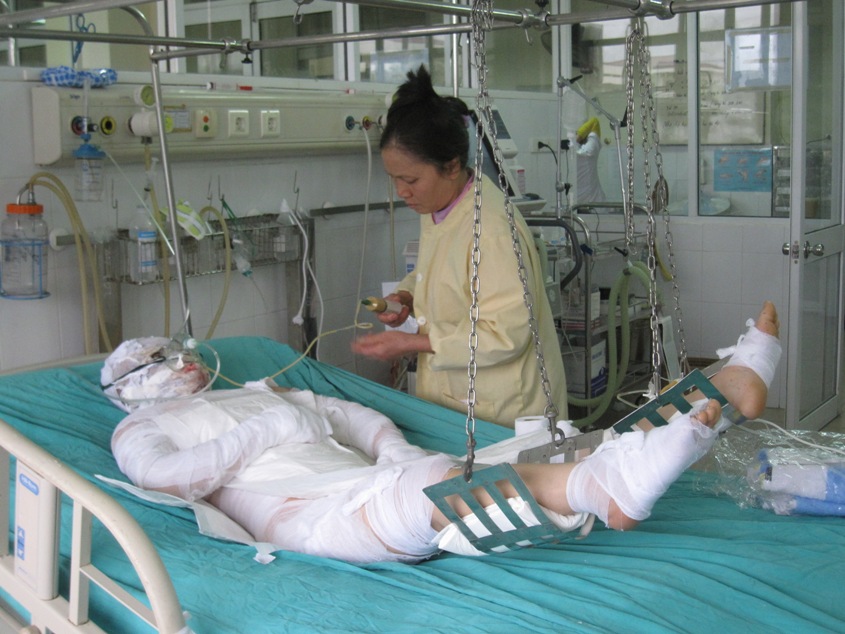 Những ngày cuối năm, khi ngoài đường người người rộn ràng chuẩn bị mua sắm đón Tết, chuẩn bị kế hoạch về quê đoàn tụ với gia đ́nh th́ Lê Thị Mai (SN 1986, trú tại thôn Quyết, Đội 5, xă Đông Lĩnh, huyện Đông Hưng, tỉnh Thanh Hóa) lại nằm thiêm thiếp trên giường bệnh Khoa hồi sức cấp cứu, Viện Bỏng Quốc gia.