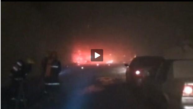 Cảnh quay cho thấy, những ánh sáng mày xanh và đỏ từ những quả pháo nổ vẫn lóe sáng một đoạn đường hầm khi lính cứu hỏa tiếp cận khu vực tai nạn để dập tắt đám cháy.