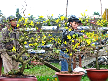 Theo cánh nhà vườn chở hoa ra phố bán cho biết: năm nay do điều kiện thời tiết ở Đà Nẵng, Quảng Nam quất được mùa những mai chẳng được mấy. Bù lại, mai kiểng từ Bình Định, Phú Yên chở ra Đà Nẵng khá nhiều, phải có tiền triệu trong tay mới chơi hoa mai.