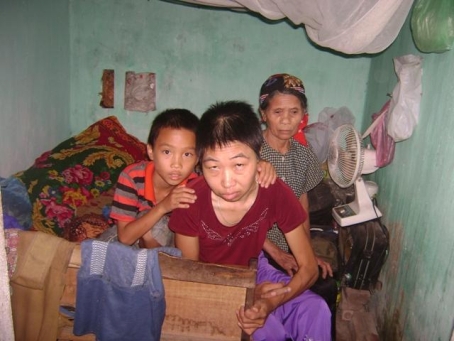 Thấy khách lạ đến nhà, cả ba người đều tỏ ra sợ sệt, có lẽ lâu lắm rồi trong căn nhà rách nát ấy mới xuất hiện những người lạ mặt, họ cứ rúm ró trên chiếc giường cũ nát rồi đưa mắt nhìn chúng tôi dò xét, chẳng ai dám mở lời trước. Biết chúng tôi đến để tìm hiểu thêm về gia cảnh khốn quẫn của gia đình, ban đầu bà Vũ Thị Bướng (mẹ anh Khiển, năm ngay đã ngoài 70 tuổi) tủi thân rơm rớm nước mắt. Bà xúc động vì hoàn cảnh khốn quẫn của gia đình bà đã được người đời thông cảm.