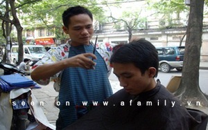 Anh thợ cắt tóc, tay tông-đơ, tay điện thoại. Cứ vài phút lại có khách quen gọi tới hỏi xem đến lượt hay chưa, và câu trả lời quen thuộc là: “45 phút nữa anh hãy tới nhé”. Bình thường cắt tóc tại đây được cạo râu miễn phí, hôm nay “tiết mục” này bị bỏ qua với lời xin lỗi thông cảm của anh thợ cắt tóc.