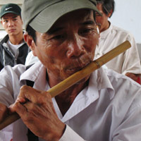 Ông là Nguyễn Đức Quý, 50 tuổi, một người tật nguyền có “độc chiêu” bán vé số bằng... tiếng sáo.