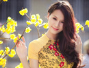 Những ngày đầu xuân với muôn hoa khoe nở làm Siêu mẫu phong cách 2009 thấy rộn ràng. Thái Hà diện áo dài mới, để tóc dài và trang điểm tự nhiên hòa mình vào không khí ngày Tết.
