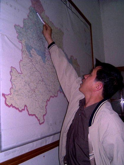 Bí thư huyện ủy Quỳnh Nhai Cầm Ngọc Minh chỉ nơi các nhóm biệt kích nhảy dù và bị tóm sống.