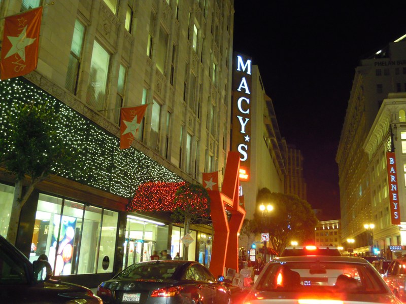 Macy's trên Union Square, San Francisco 20 giờ, 23/12/2011 (Ảnh: Nguyên Nhung)