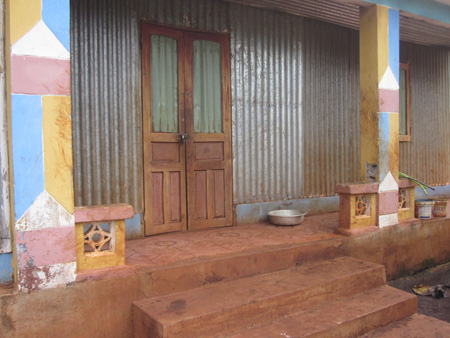 Chủ nhân của ngôi nhà gạch mới xây này bị nghi có thuốc thư nên cả làng đă kéo đến phá tan phần tường nhà, phải ráp lại bằng tôn.