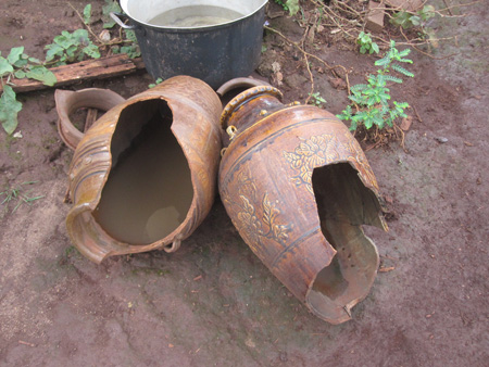 Đồ đạc trong nhà ông Phônh bị dân làng kéo nhau đến đập phá