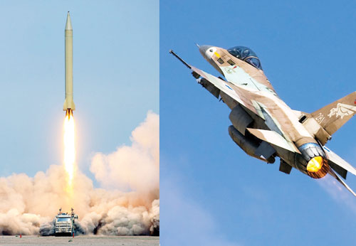 Tên lửa Shahab-3 của Iran và máy bay F-16 của Israel - ẢNH: PBASE