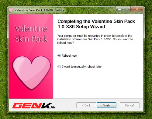 Trở lại với giao diện Valentine. Sau khi tải về gói giao diện phù hợp với hệ thống của bạn, bạn nhấn đôi vào tập tin Valentine Skin Pack 1.0.exe để bắt đầu cài đặt.