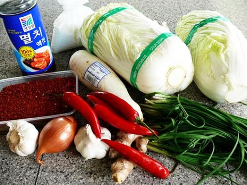 Củ cải trắng, cà rốt xắt chỉ; hành, hẹ cắt khúc; hành tây xắt mỏng rồi xay nhuyễn cùng với tỏi, gừng. Nước sốt ướp cải thì vợ tôi lấy 3 muỗng bột nếp pha nước nấu cho sền sệt rồi để nguội; sau đó cho vào dung dịch này nửa chén ớt bột, 2 muỗng đường, 4 muỗng nước mắm, nửa muỗng cà phê muối cùng với hỗn hợp hành tây, tỏi, gừng đã xay nhuyễn; củ cải, cà rốt, ớt thái chỉ, hẹ, hành lá rồi trộn đều tất cả.